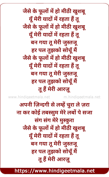 Lyrics of Meri Arzoo - जैसे के फूलों में हो मीठी खुशबू