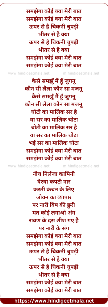 Lyrics of Meri Baat Samjhega - समझेगा कोई क्या मेरी बात