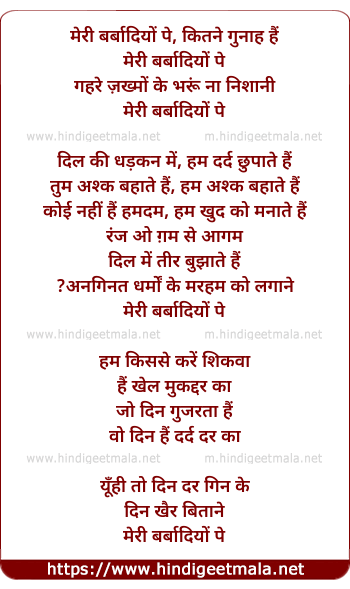 Lyrics of Meri Barbadiyo Pe - मेरी बर्बादियों पे, कितने गुनाह हैं