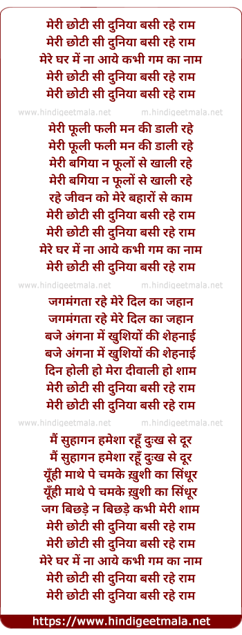 Lyrics of Meri Chhoti Si Duniya Basi Rahe Ram - मेरी छोटी सी दुनिया बसी रहे राम