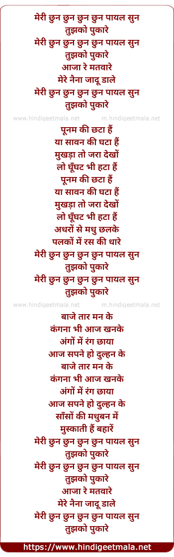 Lyrics of Meri Chhun Chhun Paayal - मेरी छुन छुन पायल