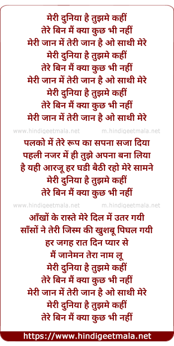Lyrics of Meri Duniya Hai (Male) - मेरी दुनिया है तुझमे कहीं