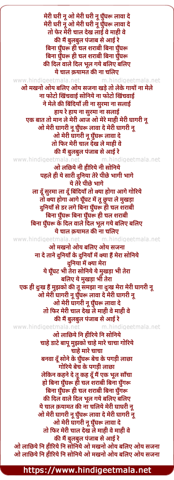 Lyrics of Meri Ghaghri Nu Ghunghru - मेरी घाघरी नू घुँघरू