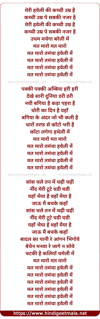 Lyrics of Meri Haveli Kachchi Umar Hai - मेरी हवेली कच्ची उम्र है