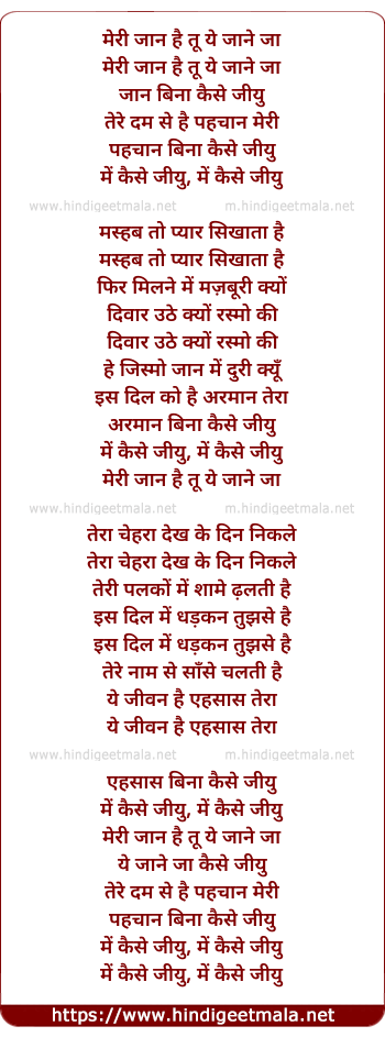 Poetic Translation - Lyrics of Meri Jaan Hai Tu (Male) - मेरी जान है तू ये जाने जा