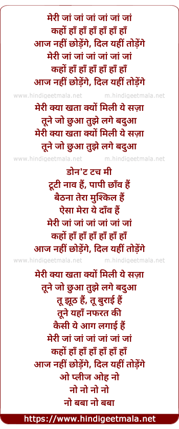 Lyrics of Meri Jaan Kaho Haan, Aaj Nahi Choodnge - मेरी जां कहों हाँ, आज नहीं छोड़ेंगे