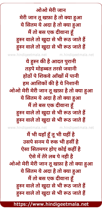 Lyrics of Meri Jaan Tu Khafaa Hai Toh Kya Hua - मेरी जान तू खफ़ा है तो क्या हुआ