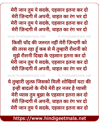 Lyrics of Meri Jaan Tum Pe Sadake, Ehasan Itana Kar Do - मेरी जान तुम पे सदके, एहसान इतना कर दो