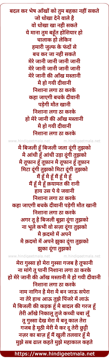 Lyrics of Meri Jaani Ki Aankh - मेरे जानी की आँख