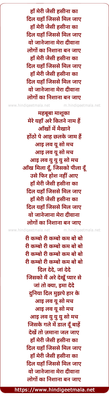 Lyrics of Meri Jaise Haseena - हाँ मेरी जैसी हसीना का