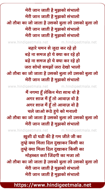 Lyrics of Meri Jan Jati Hai Mujhko Sambhalo - मेरी जान जाती है मुझको संभालो