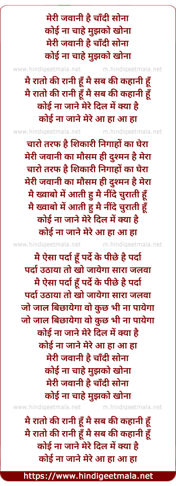 Lyrics of Meri Jawani Hai - मेरी जवानी है