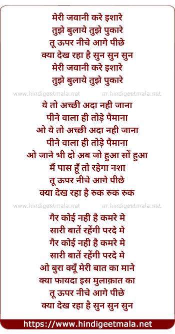 Lyrics of Meri Jawani Kare Ishare - मेरी जवानी करे इशारे