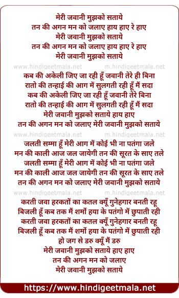 Lyrics of Meri Jawani Mujhko Sataye - मेरी जवानी मुझको सताये