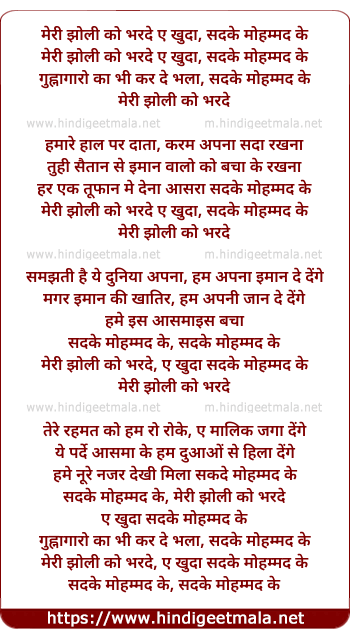 Poetic Translation - Lyrics of Meri Jholi Ko Bharde - मेरी झोली को भरदे