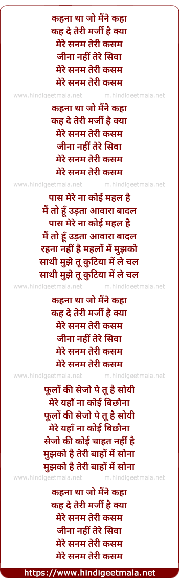 Lyrics of Meri Kasam Teri Kasam - मेरी कसम तेरी कसम