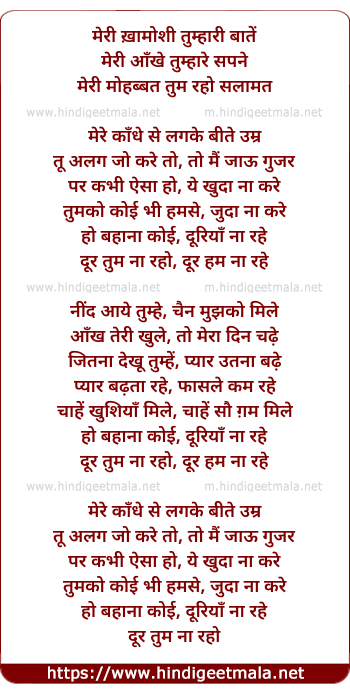 Lyrics of Meri Khaamoshi Tumhaari Baatein - मेरी ख़ामोशी तुम्हारी बातें