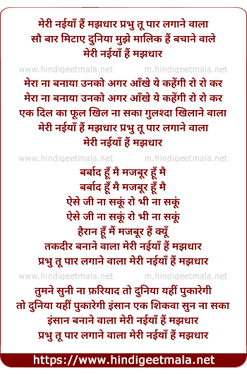 Lyrics of Meri Naiya Hai Majhdhaar - मेरी नईयाँ हैं मझधार