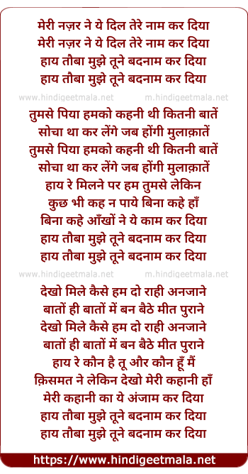 Lyrics of Meri Najar Ne Ye Dil Tere Naam - मेरी नज़र ने ये दिल तेरे नाम