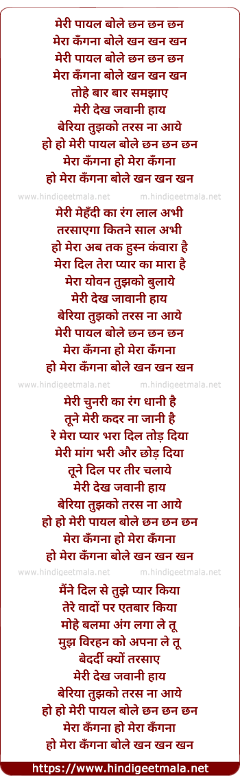 Lyrics of Meri Payal Bole - मेरी पायल बोले
