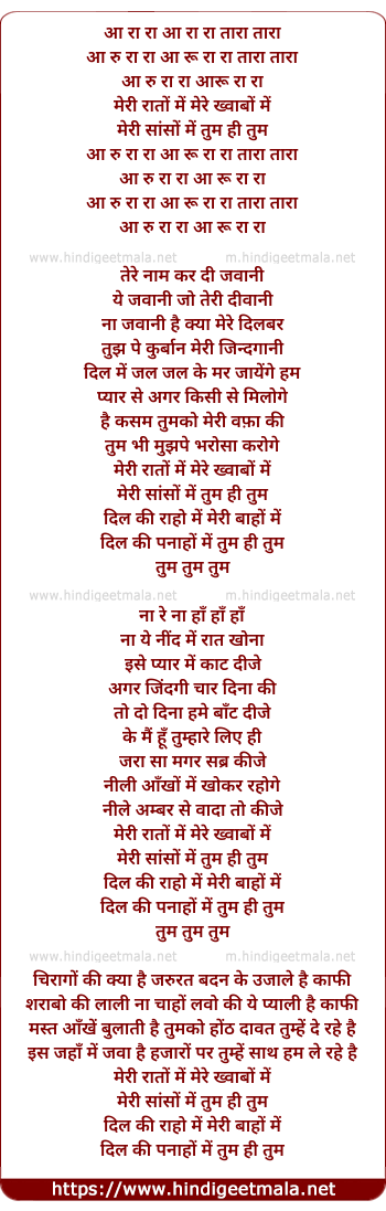 Lyrics of Meri Raato Me - मेरी रातों में
