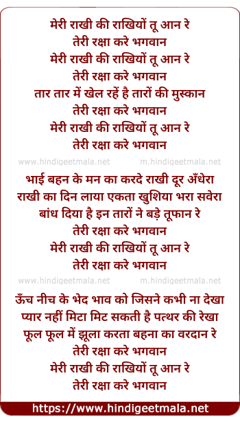 Lyrics of Meri Rakhi Ki Rakhiyo Tu Aan Re - मेरी राखी की राखियों तू आन रे