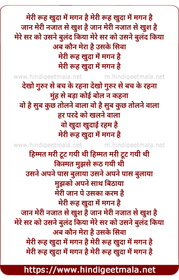 Lyrics of Meri Ruh Khuda Me Magan - मेरी रूह खुदा में मगन है मेरी रूह खुदा में मगन है