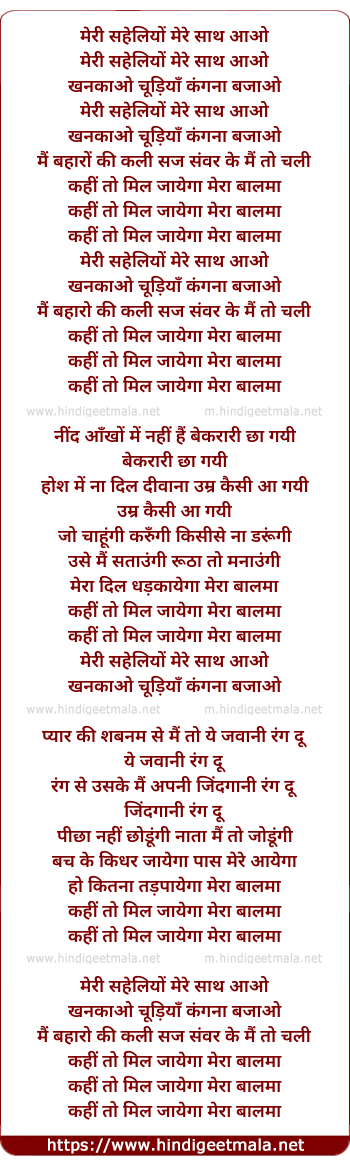 Lyrics of Meri Saheliyo Mere Saath Aao - मेरी सहेलियों मेरे साथ आओ