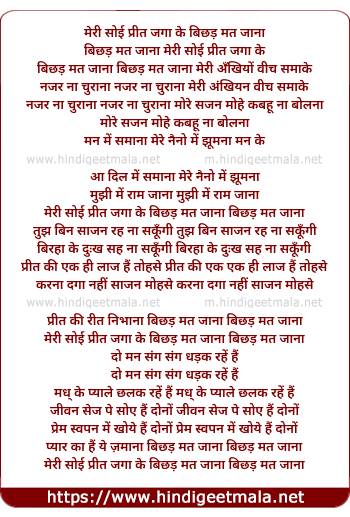 Lyrics of Meri Soyi Preet Jaga Ke Bichhad Mat - मेरी सोई प्रीत जगा के बिछड़ मत