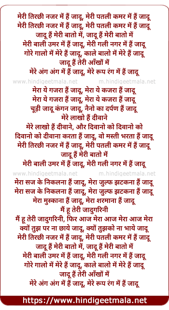 meri tirchi najar me hai jadu, meri patli kamar me hai jadu