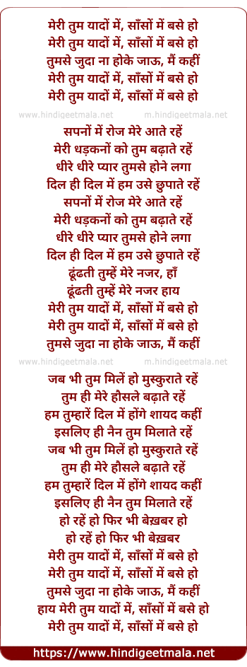 Lyrics of Meri Tum Yaado Main - मेरी तुम यादों में, साँसों में बसे हो