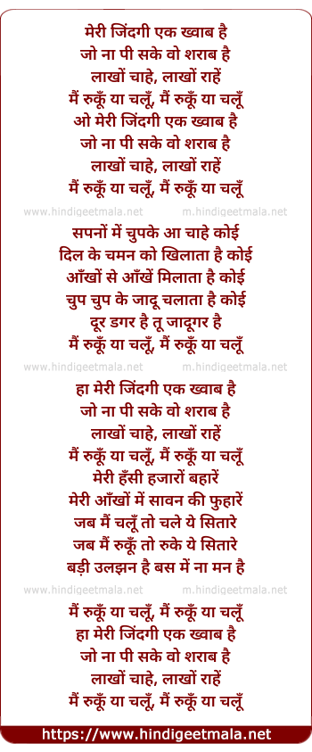 Lyrics of Meri Zindagi Ek Khwab Hai, Jo Naa Pi Sake Wo Sharab Hai - मेरी जिंदगी एक ख्वाब, जो ना पी सके वो शराब है