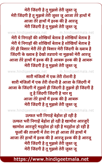 Lyrics of Meri Zindagi Hai Tu Mujhse Teri Just Ju - मेरी जिंदगी है तू मुझसे तेरी जुस्त जू