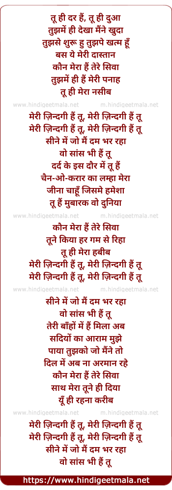 Lyrics of Meri Zindagi Hain Tu - मेरी ज़िन्दगी हैं तू