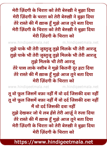 Lyrics of Meri Zindagi Ke Chirag Ko - मेरी ज़िंदगी के चिराग़ को