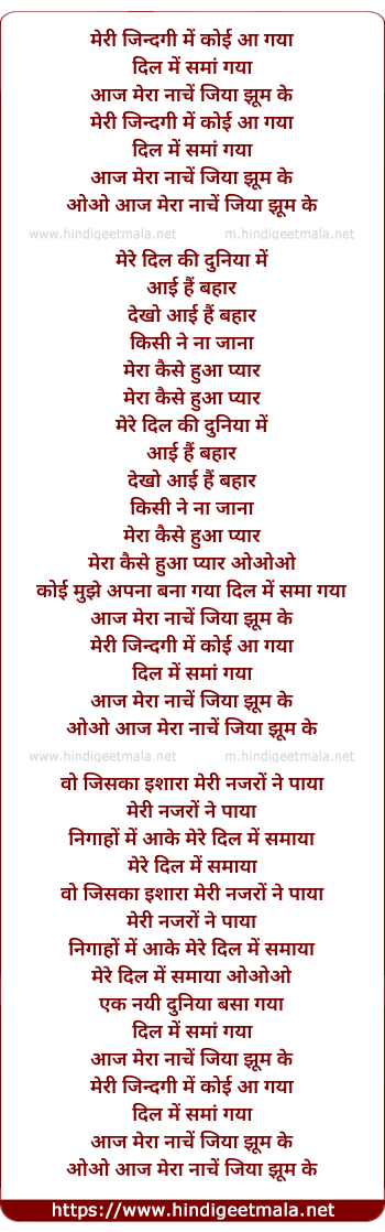 Lyrics of Meri Zindagi Me Koi Aa Gaya - मेरी जिन्दगी में कोई आ गया