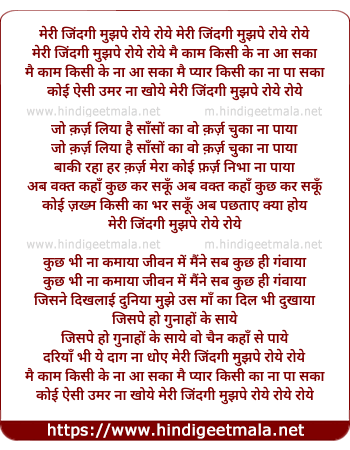 Lyrics of Meri Zindagi Mujhpe Roye - मेरी जिंदगी मुझपे रोये