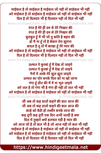Lyrics of Michael Hai To Cycle Hai - माईकल है तो साईकल है