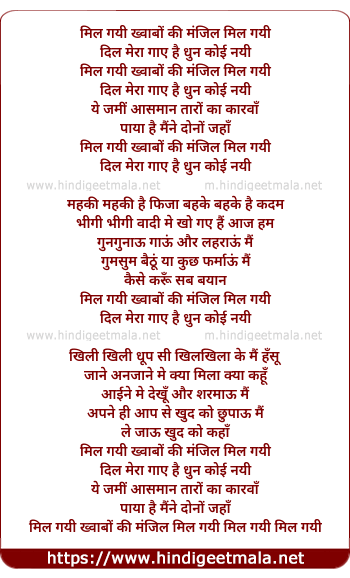 Lyrics of Mil Gayi Khwab Ki Manzil - मिल गयी ख्वाबों की मंजिल