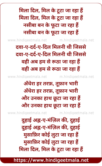 Lyrics of Milaa Dil Mil Ke Tutaa Ja Rha Hai - मिला दिल, मिल के टूटा जा रहा हैं