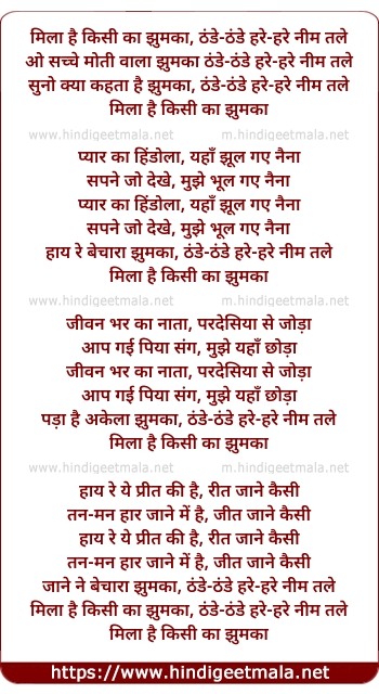 o sachche moti vala jhumaka, thande-thande hare-hare neem tale