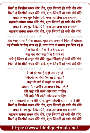 Lyrics of Mili Hai Kisise Najar Dhire Dhire - मिली है किसीसे नजर धीरे धीरे