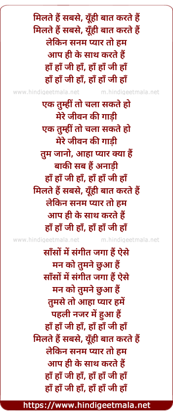 Lyrics of Milte Hain Sab Se (Male) - मिलते हैं सबसे, यूँही बात करते हैं
