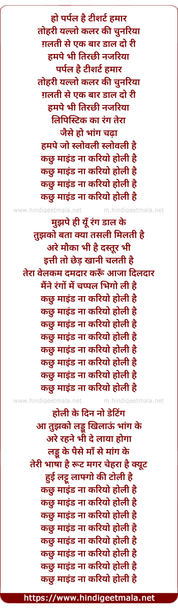 Lyrics of Mind Na Kariyo Holi Hai - माइंड ना करियो होली है