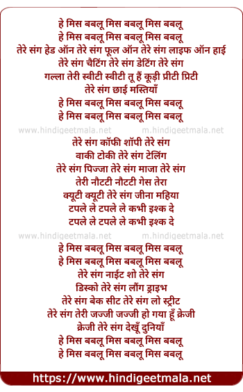 Lyrics of Miss Baabloo - मिस बबलू