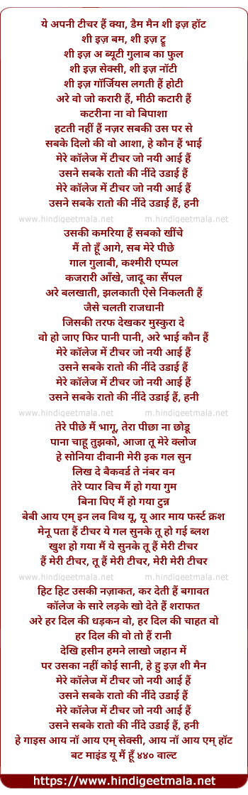 Lyrics of Miss Teacher - मिस टीचर