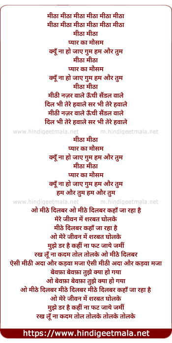 Lyrics of Mitha Mitha Pyaar Ka Mausam - मीठा मीठा प्यार का मौसम