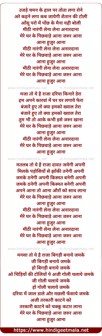 Lyrics of Mithi Narangi Lena Lena Anardana - मीठी नारंगी लेना लेना अनारदाना