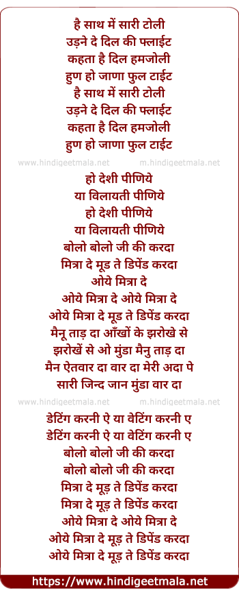 Lyrics of Mitran De Mood Te Depend Karda - है साथ में सारी टोली