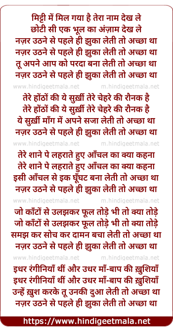 nazar uthane se pahale hi jhuka leti to achchha tha